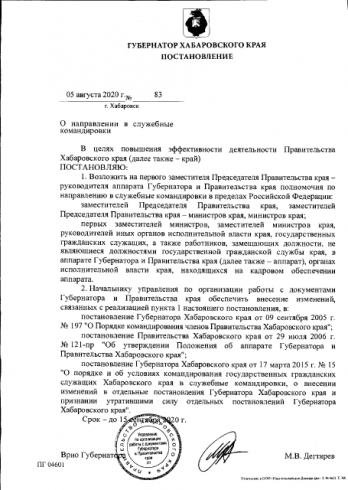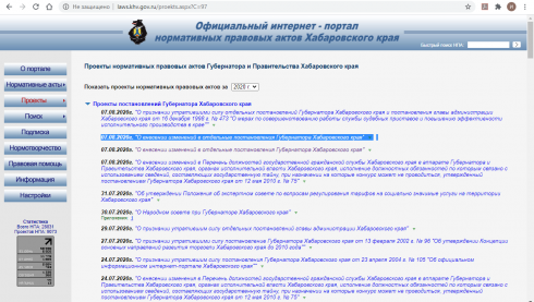 Зато есть документ под названием «О внесении изменений в отдельные постановления Губернатора Хабаровского края» от 7 августа.