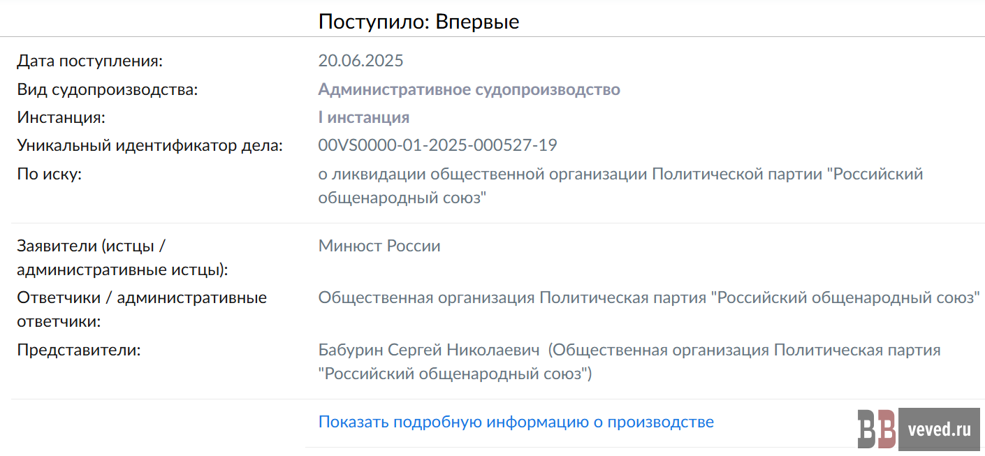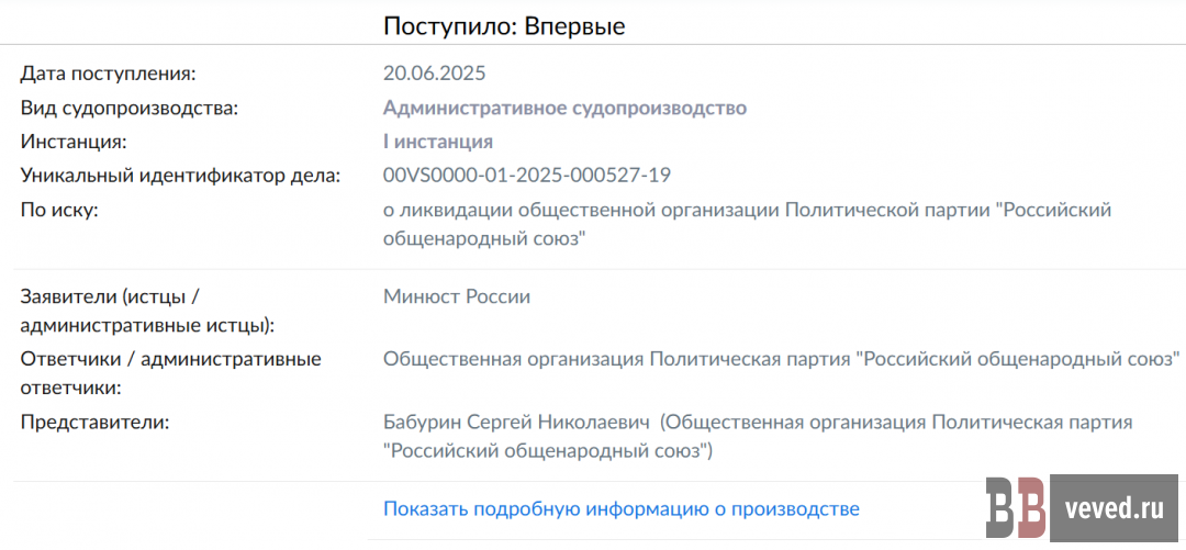 В Верховный суд РФ поступил иск о ликвидации ещё одной политической партии — на этот раз Минюст требует ликвидировать партию «Российской общенародный союз» (РОС). Карточку дела на сайте Верховного суда обнаружил корреспондент Вечерних ведомостей.