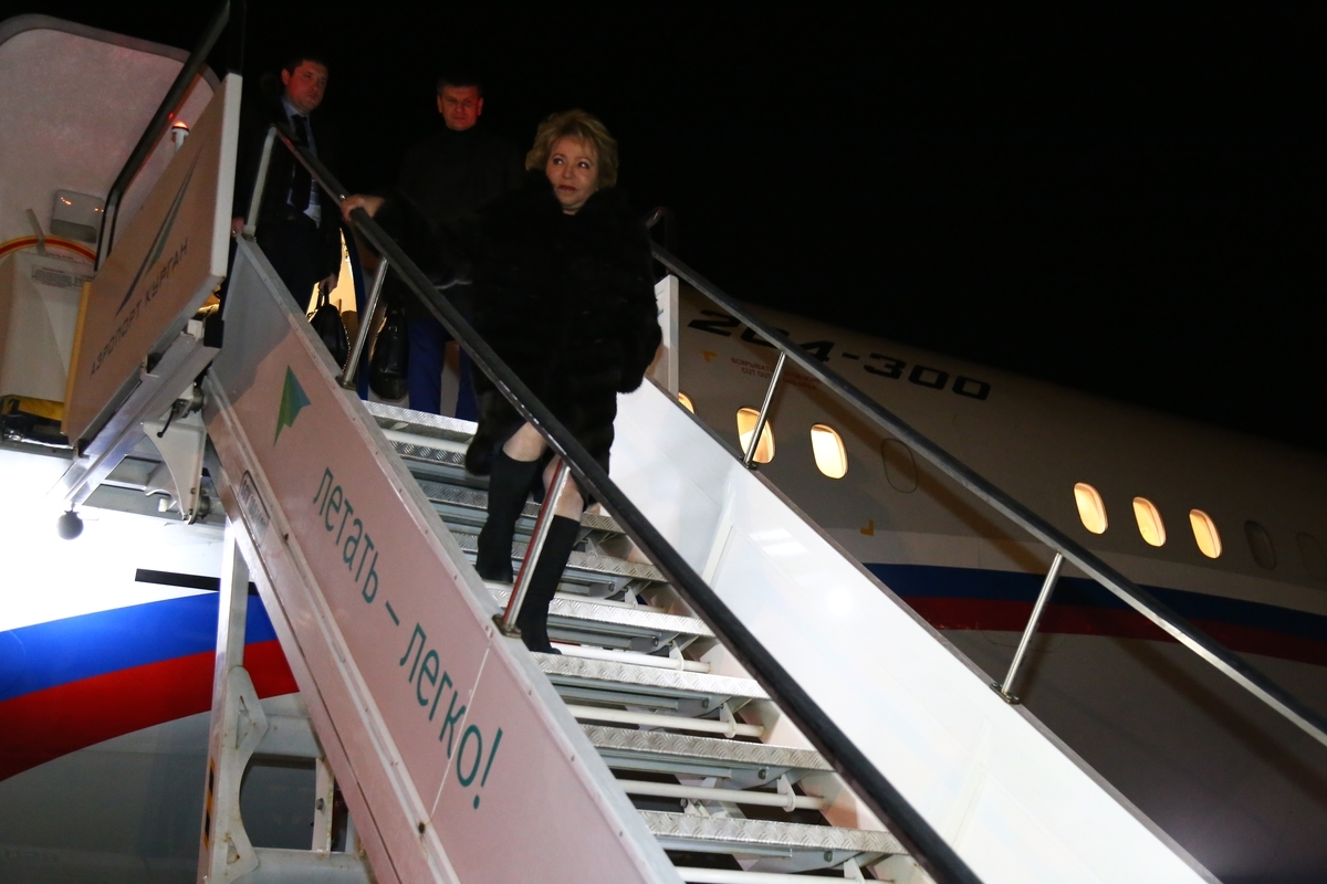 В Курганскую область с рабочим визитом прибыла председатель Совета Федерации Федерального Собрания РФ Валентина Матвиенко. Как рассказали в пресс-службе главы региона, её самолет приземлился в аэропорту Кургана 14 февраля в 23 часа.